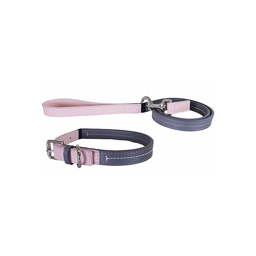 Baby Pink/Grey Leather Lead 3/4"40"